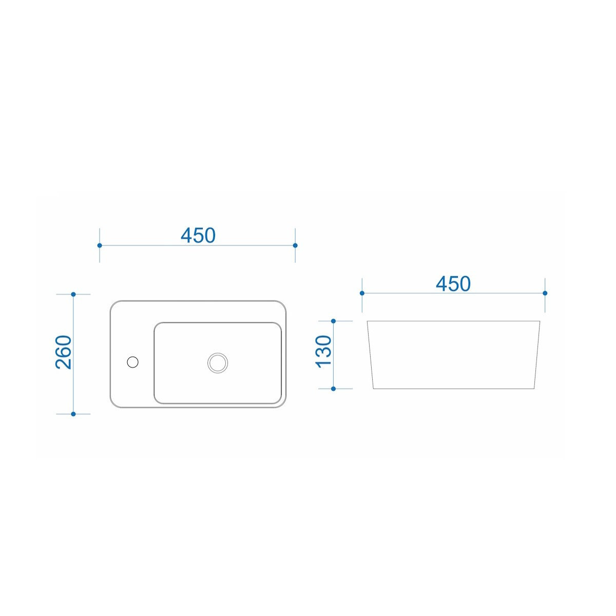 Раковина подвесная Maretti AR13PD84-844, белая. Материал: санфарфор. Размер: 45x26x13. Форма: прямоугольная.