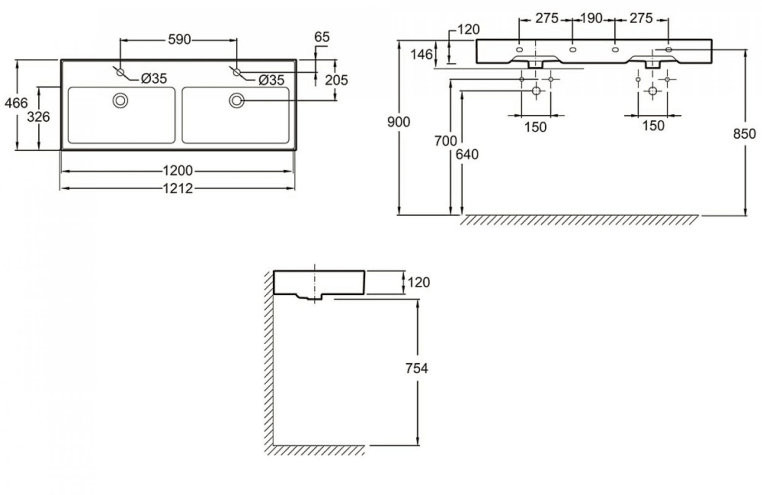 EXBL112-00 Vivienne, двойная раковина-столешница, 120 см, белая