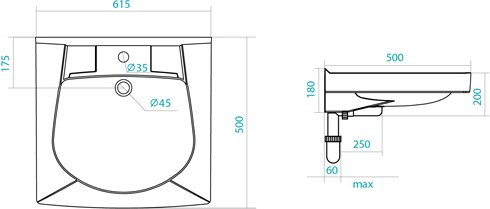 1.WH30.1.970 ПИЛОТ умывальник 50 см (кронштейн, крепление, сифон в комплекте)