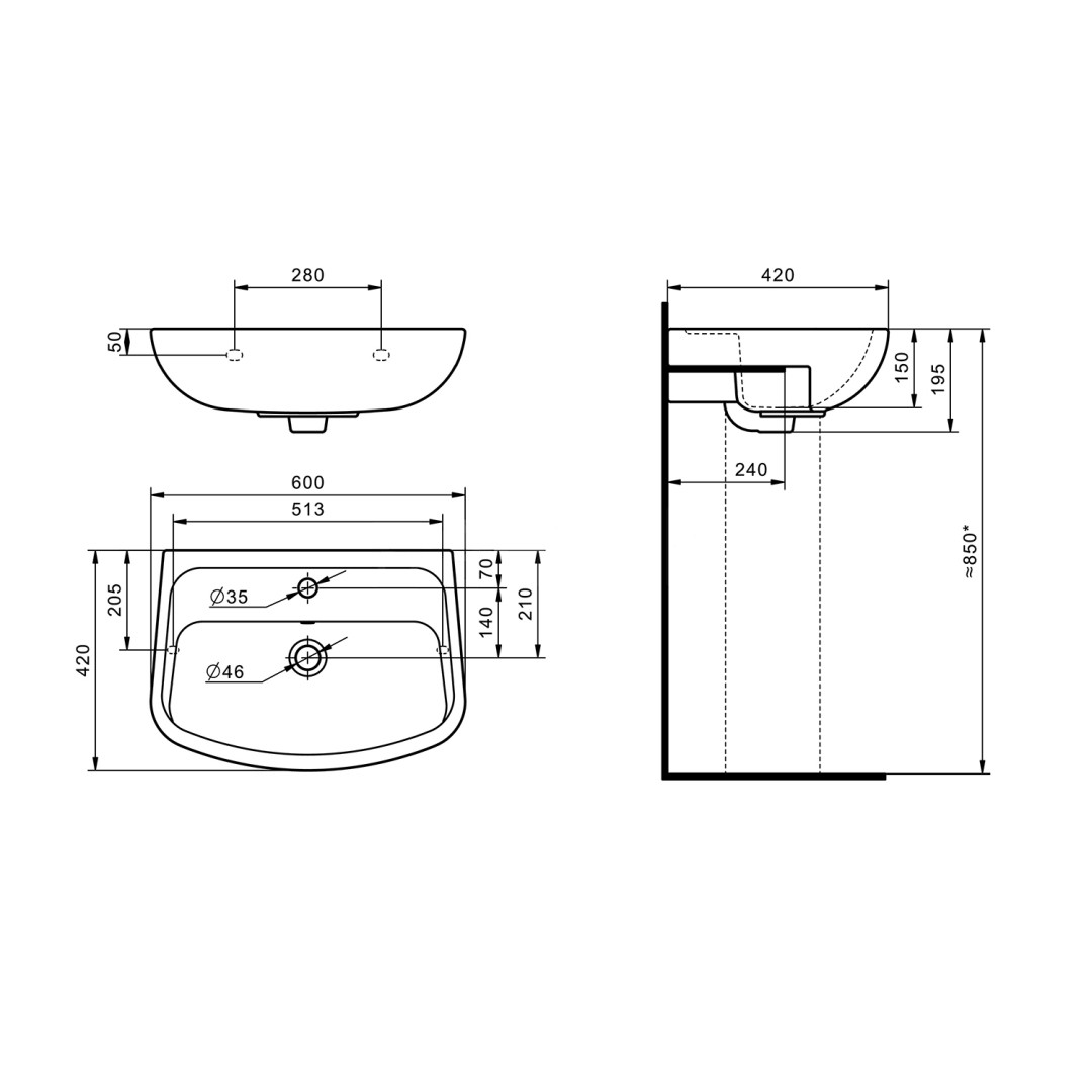 1.WH50.1.756 ЛОНГИ умывальник 60 см 1/отв