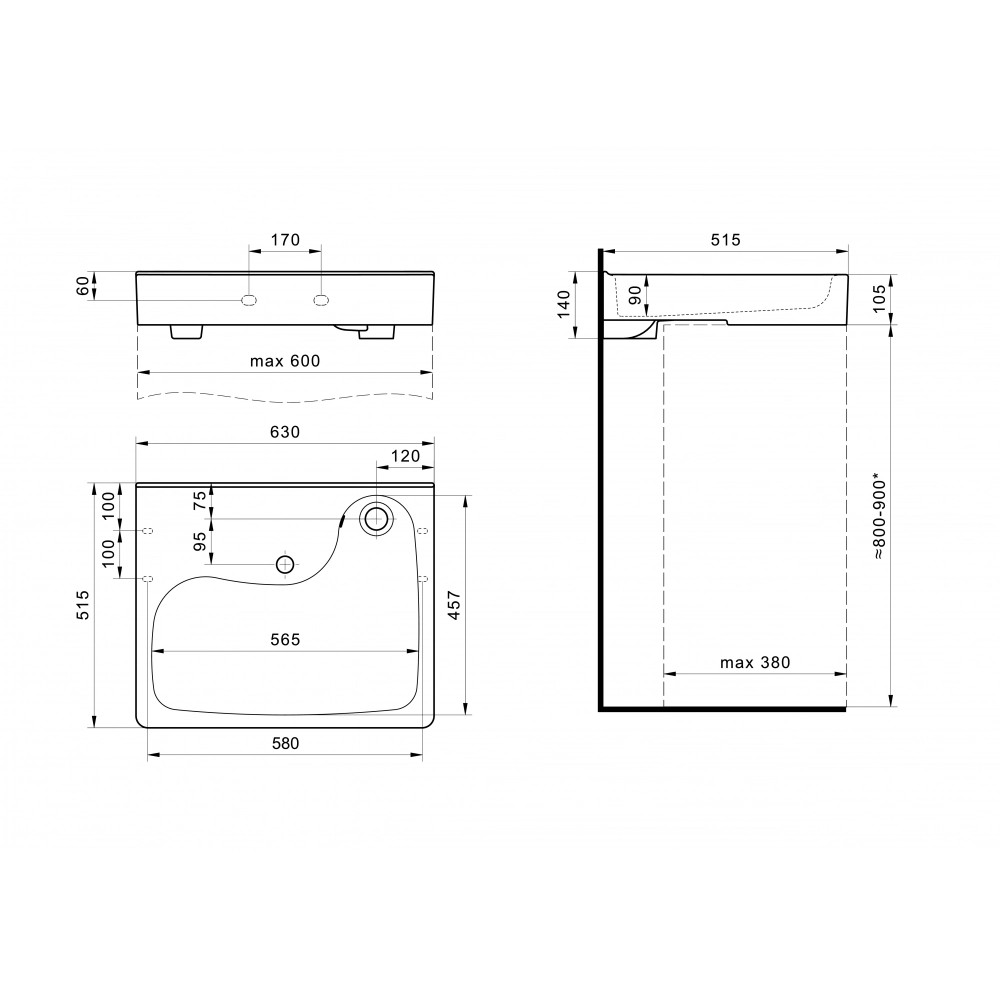 1.WH50.1.784 КЛИО Умывальник 50 см (с кронштейнами и сифоном)