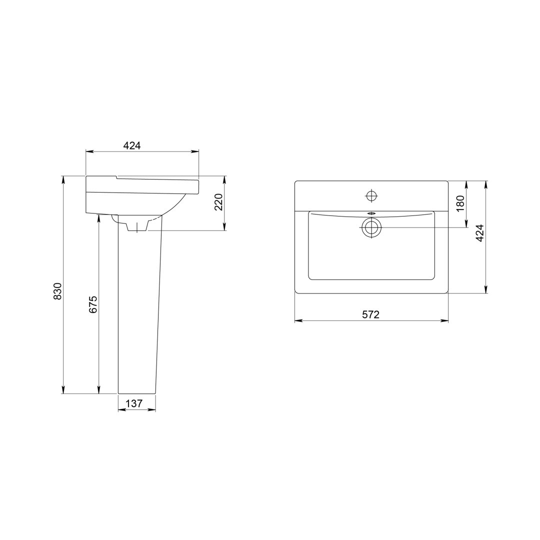 131108S0011B0 Умывальник Орион с переливом белый 572х424