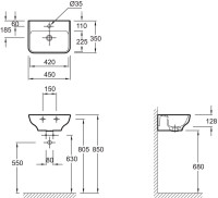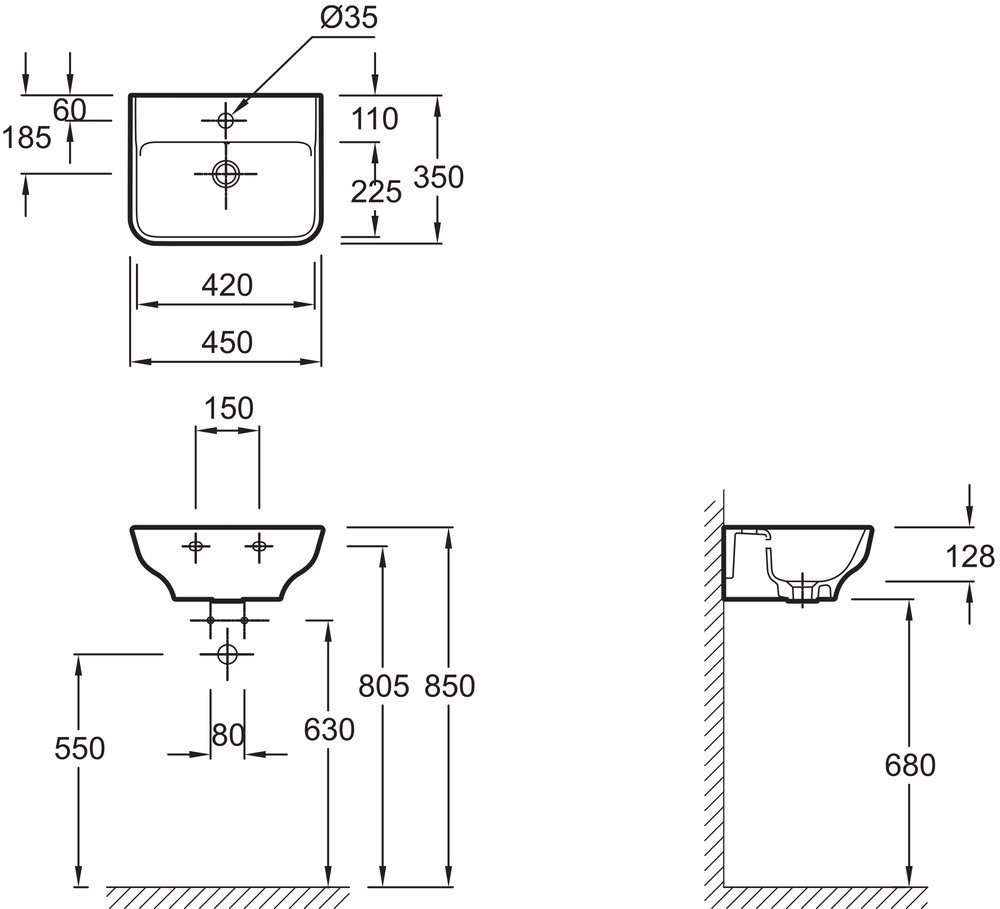 EGH112-00 Рукомойник 45x35 с отв.для смесителя,сл.пер.,белый