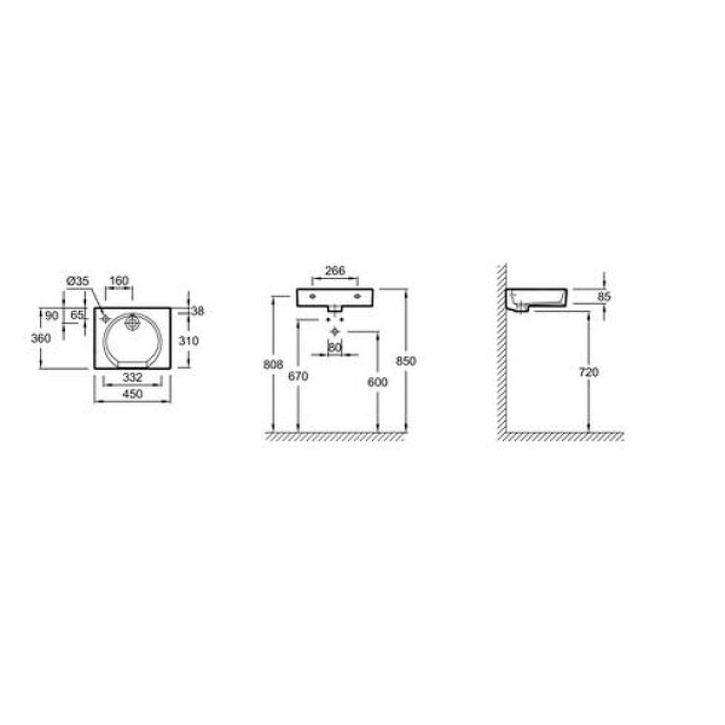 EGN112-00 ODEON RG Рукомойник 45 см, с отверстием под смеситель, белый