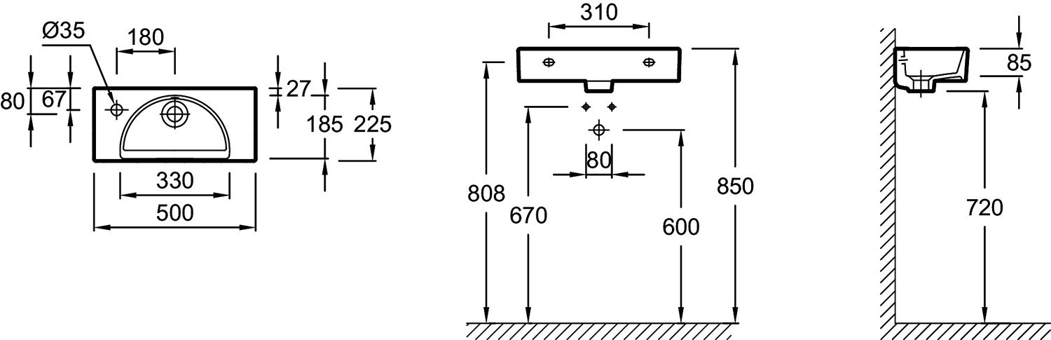 EGO112-55-00 Odeon RG Компактный рукомойник 50 см*22 см (отверстие слева)