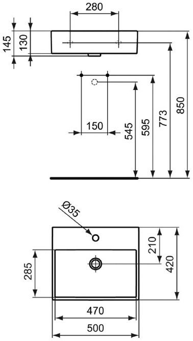 K077701 Strada Умывальник 50 см, 1 отверстие под смеситель, с отверстием перелива, с монтажным шаблоном, без крепежа