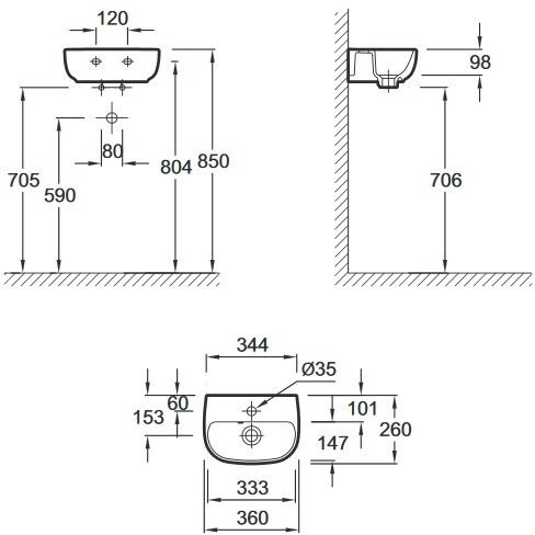 ODEON UP E4761-00 Компактный рукомойник Odeon Up 36 х 26 см, одно отверстие под смеситель