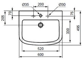 T056401 Tempo Умывальник 60 см, центральное отверстие под смеситель готово