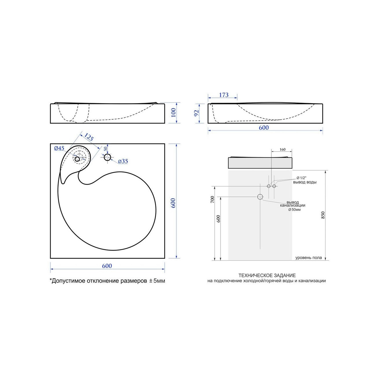 Материал: литьевой мрамор;