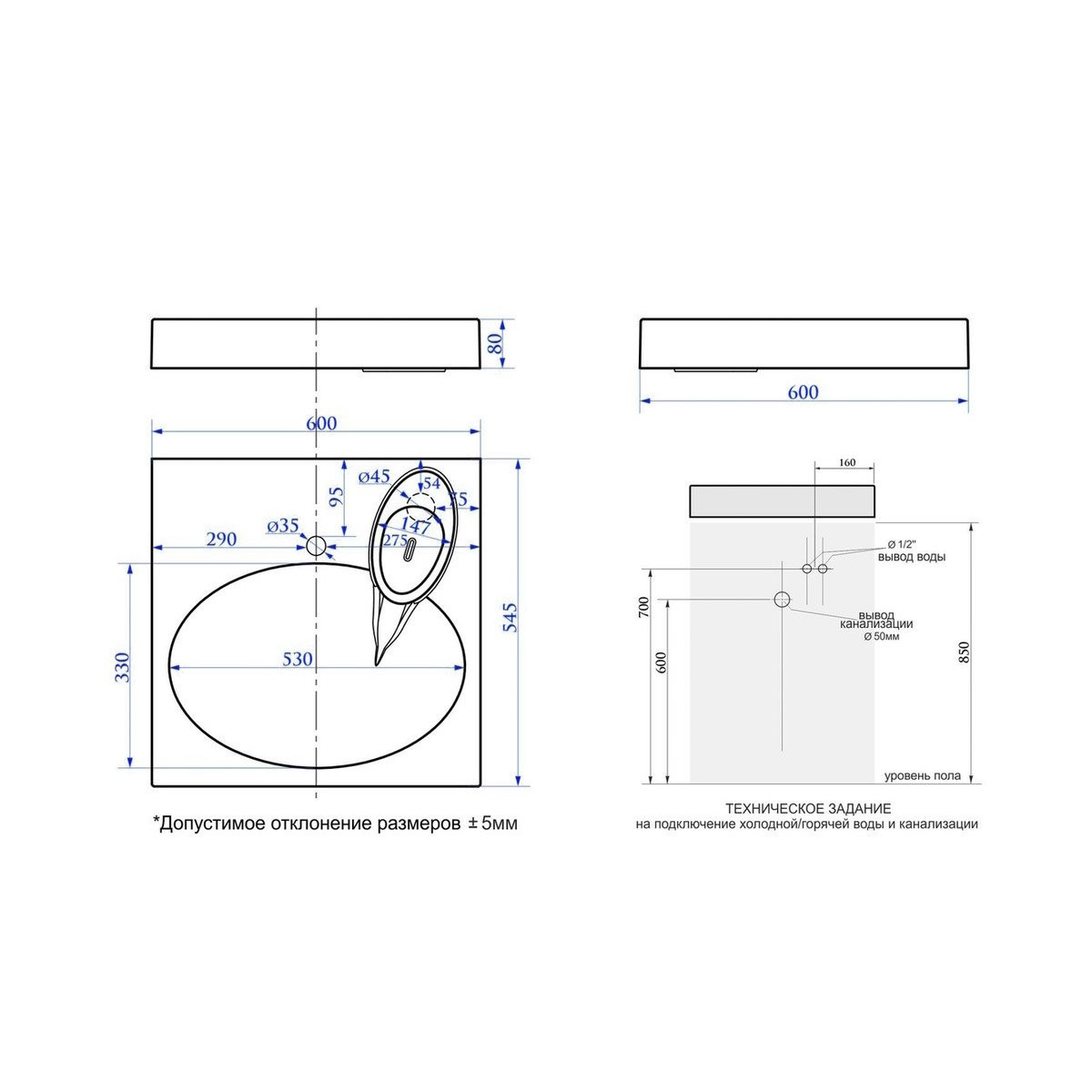 Комплектация: раковина, мыльница, кронштейны;