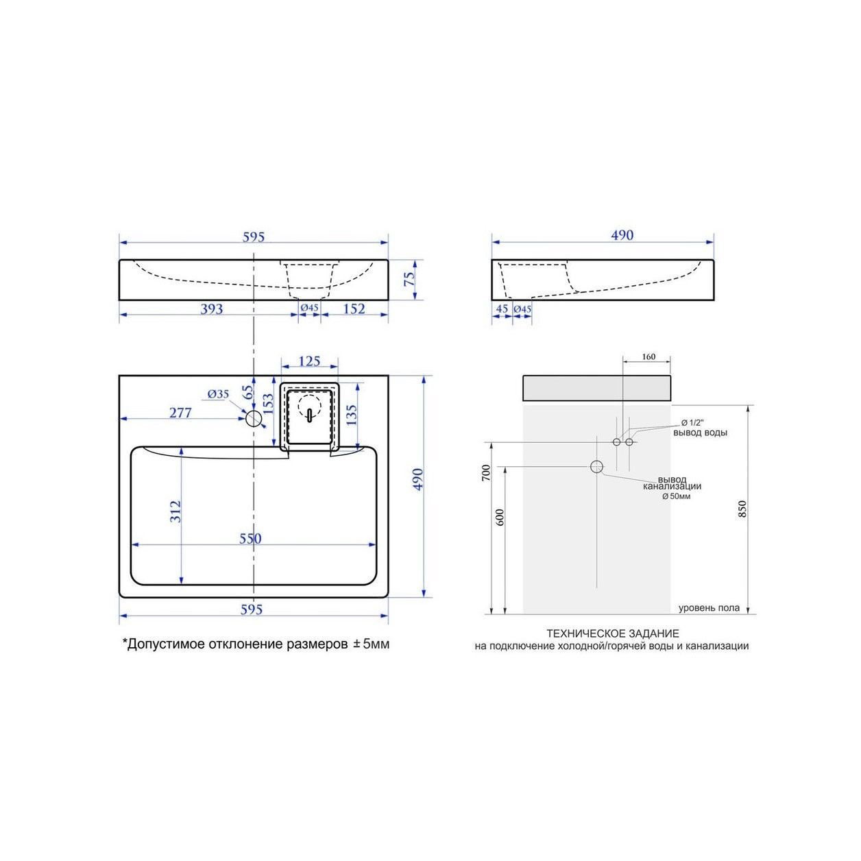 Материал: литьевой мрамор;