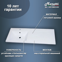 Раковина над стиральной машиной Maretti UM13SM22-844, белая. Материал: литьевой мрамор. Размер: 120,3x48,2x15. Форма: прямоугольная. Крыло справа.