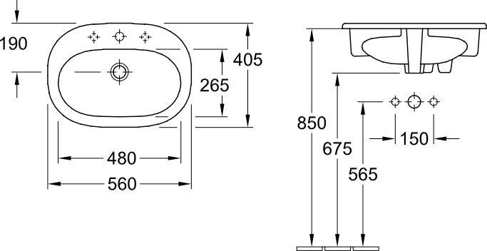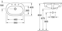 4161 5601 O.NOVO Раковина 560х405, встраиваемая, с отверстием под смеситель, с переливом, Альпийский белый