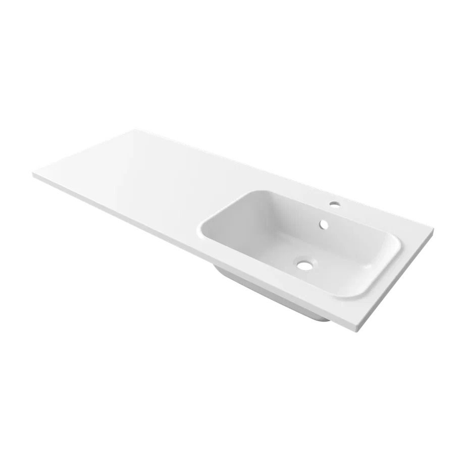 Раковина-столешница универсальная Paola Bella 1200 R (правая чаша) для подвесной установки над стиральной машиной и частично на тумбу. Современная, стильная, эргономичная, позволяет экономить площадь ванной комнаты (под столешницу прекрасно впишется стиральная машина). Также возможен монтаж раковины полностью на тумбу вровень. Раковина выполнена из прочного износостойкого литьевого мрамора, сверху покрыта специальным защитным покрытием гелькоутом. Исполнение поверхности Glossy Shine - изделие обладает глянцевым блеском, очень приятное на ощупь, прочное. Даже при минимальном уходе долго сохраняет безупречный цвет и внешний вид. В комплекте - левый кронштейн с крепежом, слив-перелив, технический паспорт и гарантийный талон. Заводская гарантия составляет 5 лет, срок службы более 10 лет.
