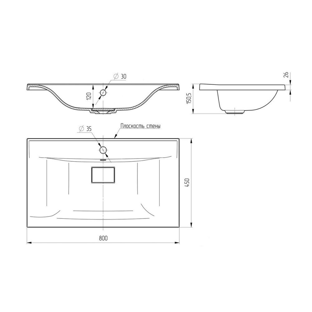 Намеченные отверстия под смеситель: нет;