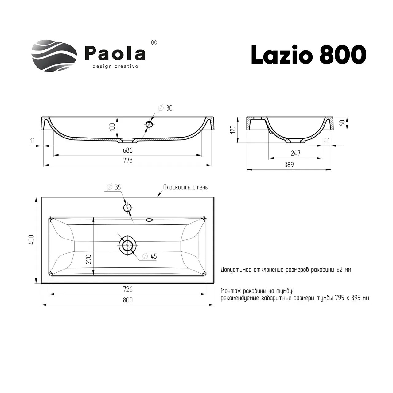 Врезная раковина Paola Lazio 800 c возможностью установки на тумбу вровень или на столешницу. Современная, стильная, эргономичная раковина выполнена из прочного износостойкого литьевого мрамора, сверху покрыта специальным защитным покрытием гелькоутом. Изделие обладает глянцевым блеском, исполнение поверхности Glossy Shine - очень приятное на ощупь, прочное. Даже при минимальном уходе сохраняет безупречный цвет и внешний вид. В комплекте идет слив-перелив с декоративной хромированной заглушкой "Агура" , технический паспорт и гарантийный талон. Заводская гарантия составляет 5 лет, срок службы более 10 лет.