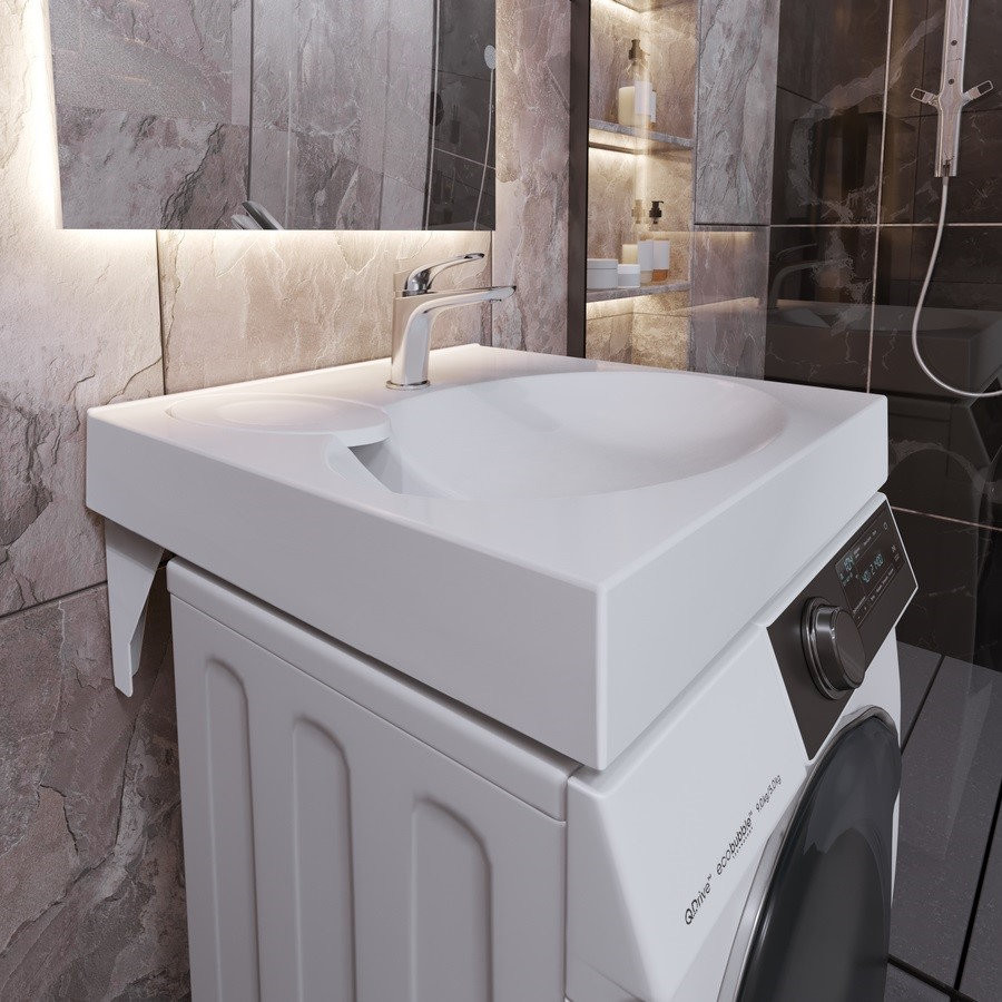 Раковина Paola Liguria 600 для установки над стиральной машиной. Максимальная глубина стиральной машины: 46 см. Компактная, эргономичная, позволяет экономить площадь ванной комнаты. Paola Liguria 600 выполнена из прочного износостойкого литьевого мрамора, сверху покрыта специальным защитным покрытием гелькоутом. Изделие обладает глянцевым блеском, очень приятное на ощупь, прочное. Даже при минимальном уходе сохраняет безупречный цвет и внешний вид. В комплекте - выпуск, комплект из 2 кронштейнов и крепежей, декоративный элемент, под которой спрятан слив, технический паспорт и гарантийный талон.