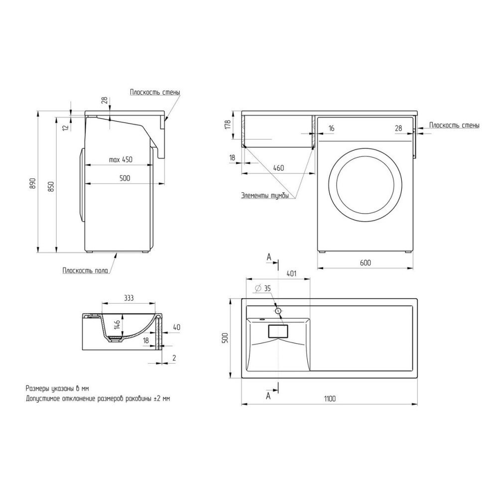 Комплектация: раковина, декоративный элемент, слив-перелив, кронштейн правый, комплект крепежа;