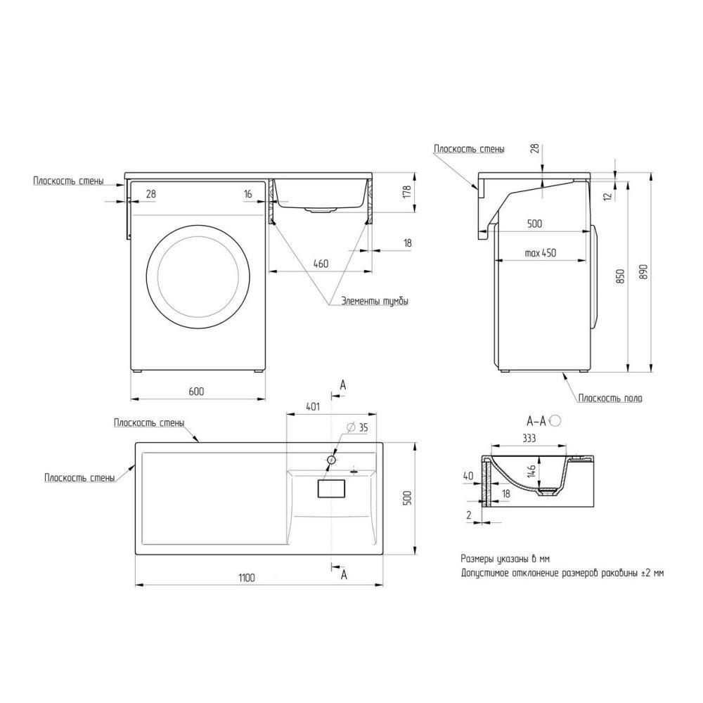 Материал: литьевой мрамор;