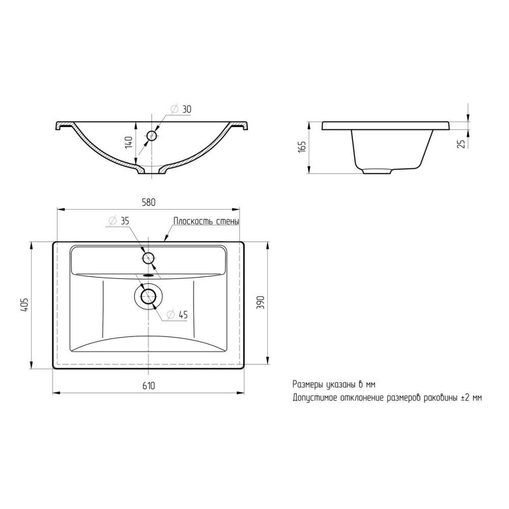 Комплектация: раковина, слив-перелив;