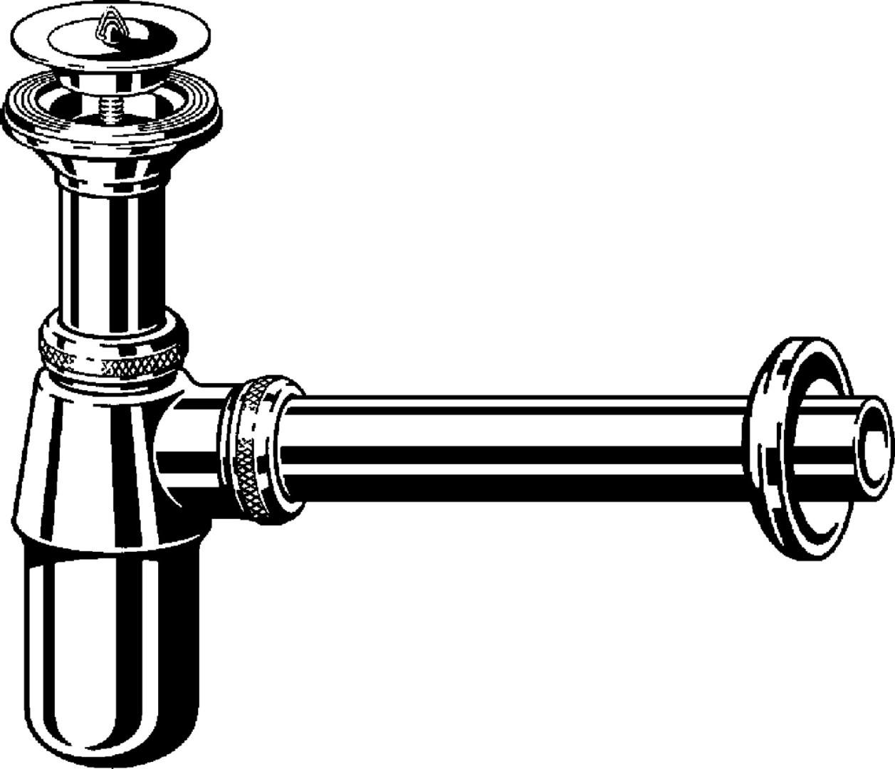 102845 Сифон для раковины (латунь), с пробкой, 1 1/4 x 32, хром, неразъемная чашка выпуска