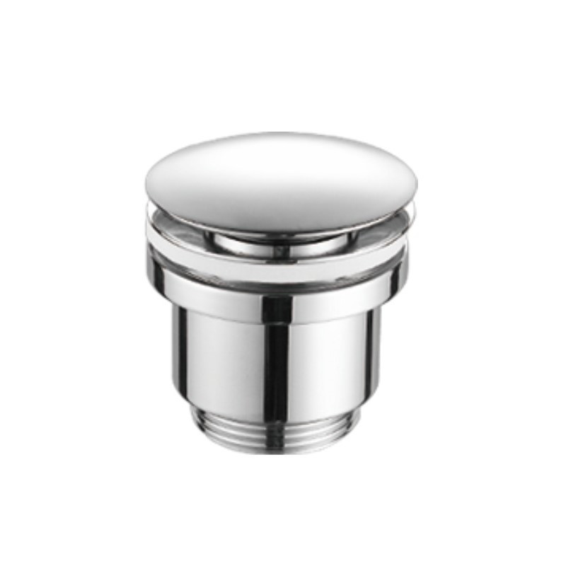 Донный клапан Haiba HB64. Данная модель имеет металлический корпус. Крышка хромированная, выполнена из нержавеющей стали. Силиконовые прокладки обеспечивают плотное прилегание донного клапана к посадочному месту раковины. Без перелива.