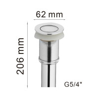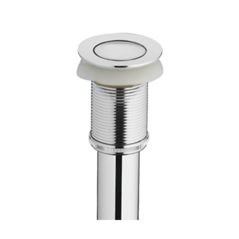 Донный клапан Haiba HB66. Данная модель имеет удлиненный металлический корпус. Крышка хромированная, выполнена из нержавеющей стали. Силиконовые прокладки обеспечивают плотное прилегание донного клапана к посадочному месту раковины. Без перелива.