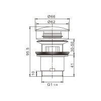 Клапан имеет стандартный выход 5/4", что делает его совместимым с большинством систем канализации и сифонов. Это упрощает процесс установки и позволяет избежать необходимости в дополнительных переходниках или адаптерах.