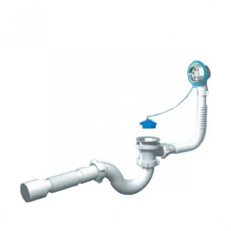 Сифон АНИ для ванны S тип., 1 1/2"х40/50, нерж. вып. и пер. (Е151)