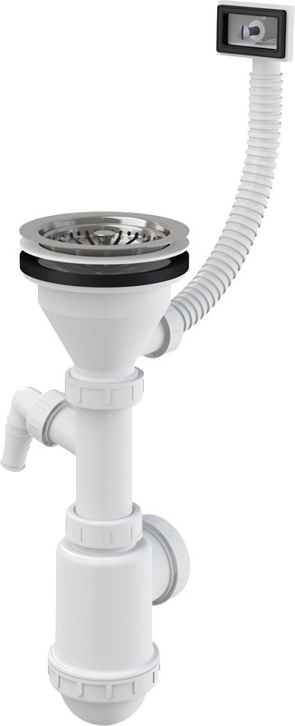 СИФОН ДЛЯ МОЙКИ С НЕРЖАВЕЮЩЕЙ PEШEТКОЙ Ø115, ГОФРОПЕРЕЛИВОМ И ШТУЦЕРОМ