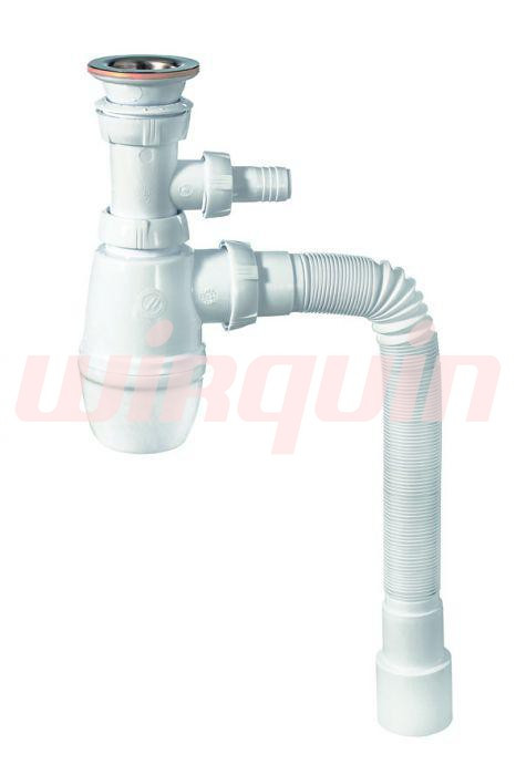 Сифон для раковины Wirquin «МИНОР» с нержавеющей чашкой, с отводом и с гофротрубой (30718052)