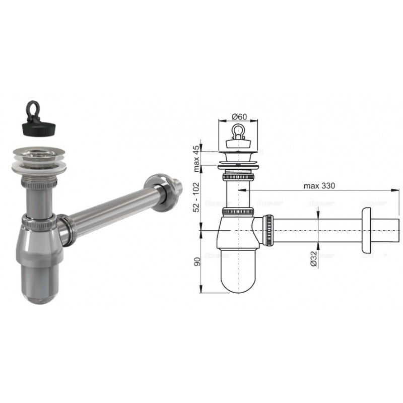 СИФОН ДЛЯ УМЫВАЛЬНИКА DN32 С ДОННЫМ КЛАПАНОМ 5/4", МЕТАЛЛ, A437