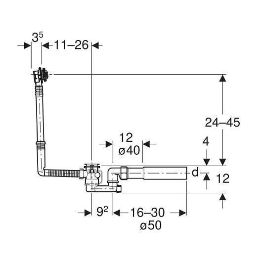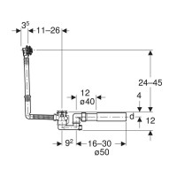 150.520.21.6 Слив-перелив Geberit, d52, длина 26 см, с декоративным комплектом: Глянцевый хром