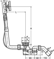 724566 Multiplex Visign M9 Слив-перелив для стандар ванн BWL (длина тросика) = 560 мм, DN=40/50, увеличение уровня воды на 5 см, модель 6171.10, хром