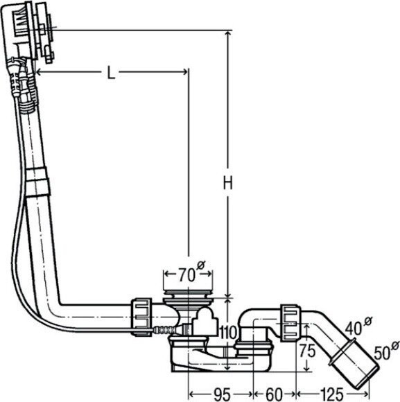 727970 Multiplex Trio Слив-перелив с наливом для ванн c центр. сливом, наполнение через перелив 725*40/50, хром, плоская конструкция, модель 6161.62