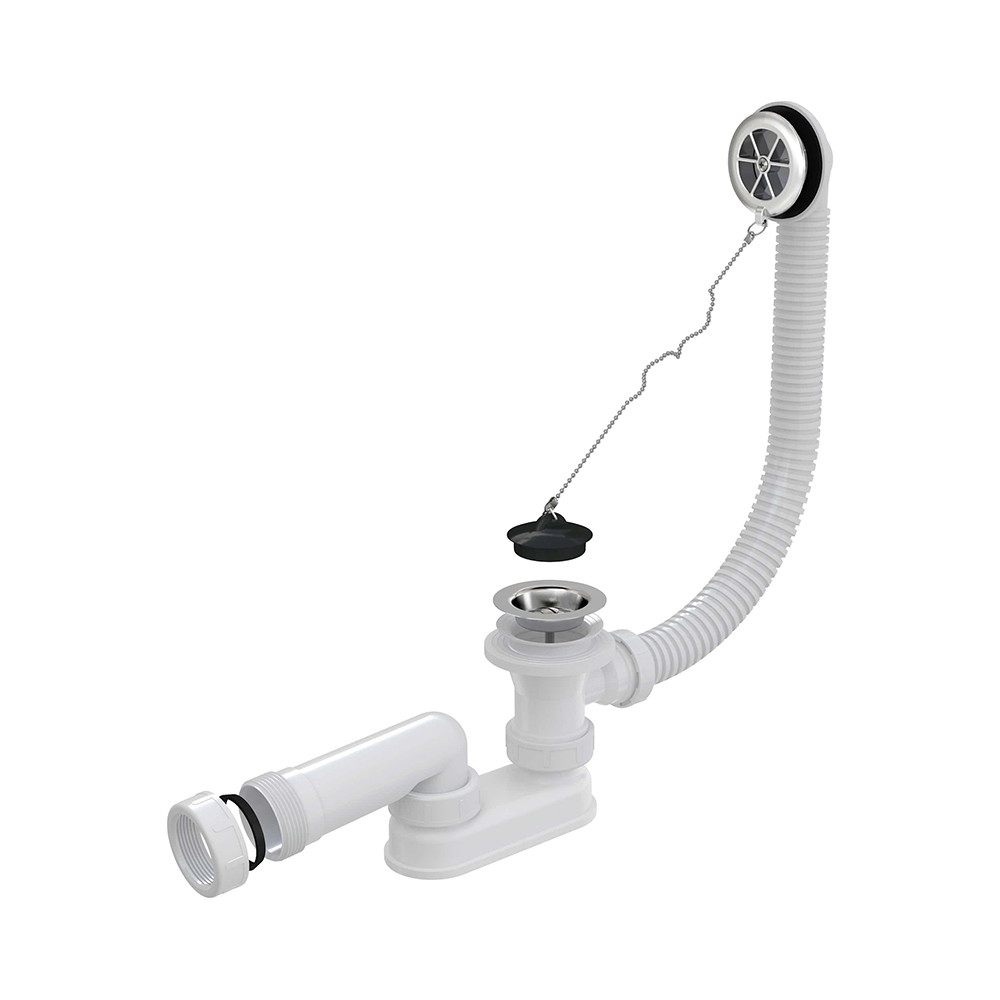 Корпус сифона с системой перелива Хромированная пластиковая решетка перелива Пробка из ПВХ на цепочке Хромированная решетка слива из нержавеющей стали Гидрозатвор сифона из полипропилена, сваренный ультразвуковым методом, устойчив к термическим и химическим воздействиям Профильное уплотнение