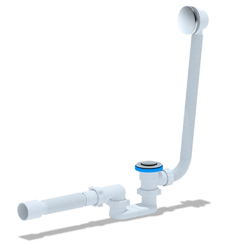 • Сифон сливной АНИ пласт EC055S для ванны с выпуском "клик-клак", сеткой и переливом.