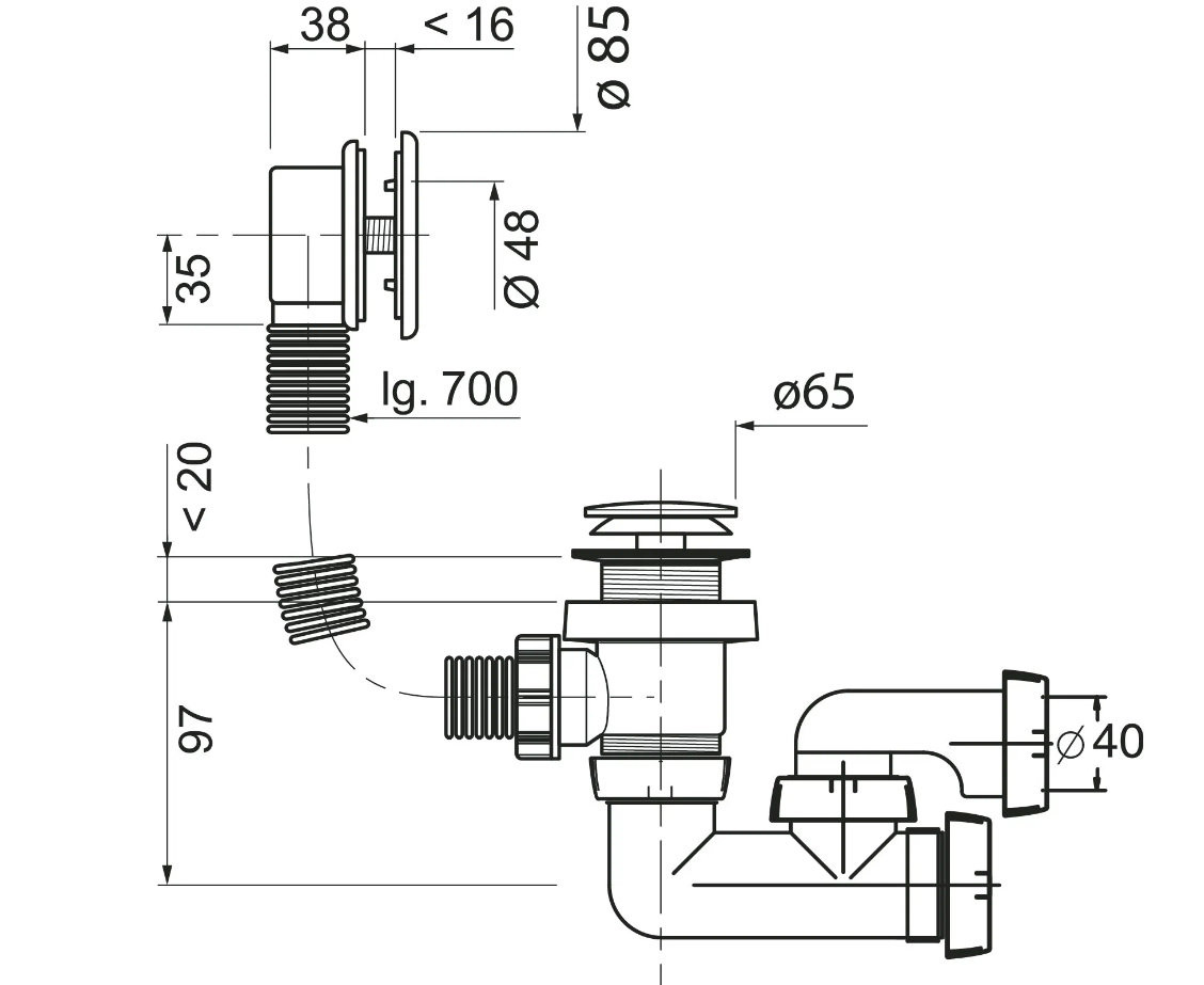 Слив-перелив п/автомат WIRQUIN для ванны с внешним кабелем L=700мм регулируем.сифоном, вентиль и клапан латунь, с гофротрубой, хром (ПРОДАЕМ ИЗ НАЛИЧ)