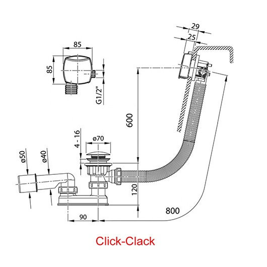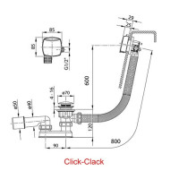 Сточный комплект с заполнением переливом Click Clack хром (квадратный) 800мм
