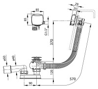 Сточный комплект с заполнением переливом хром (длина 570мм)