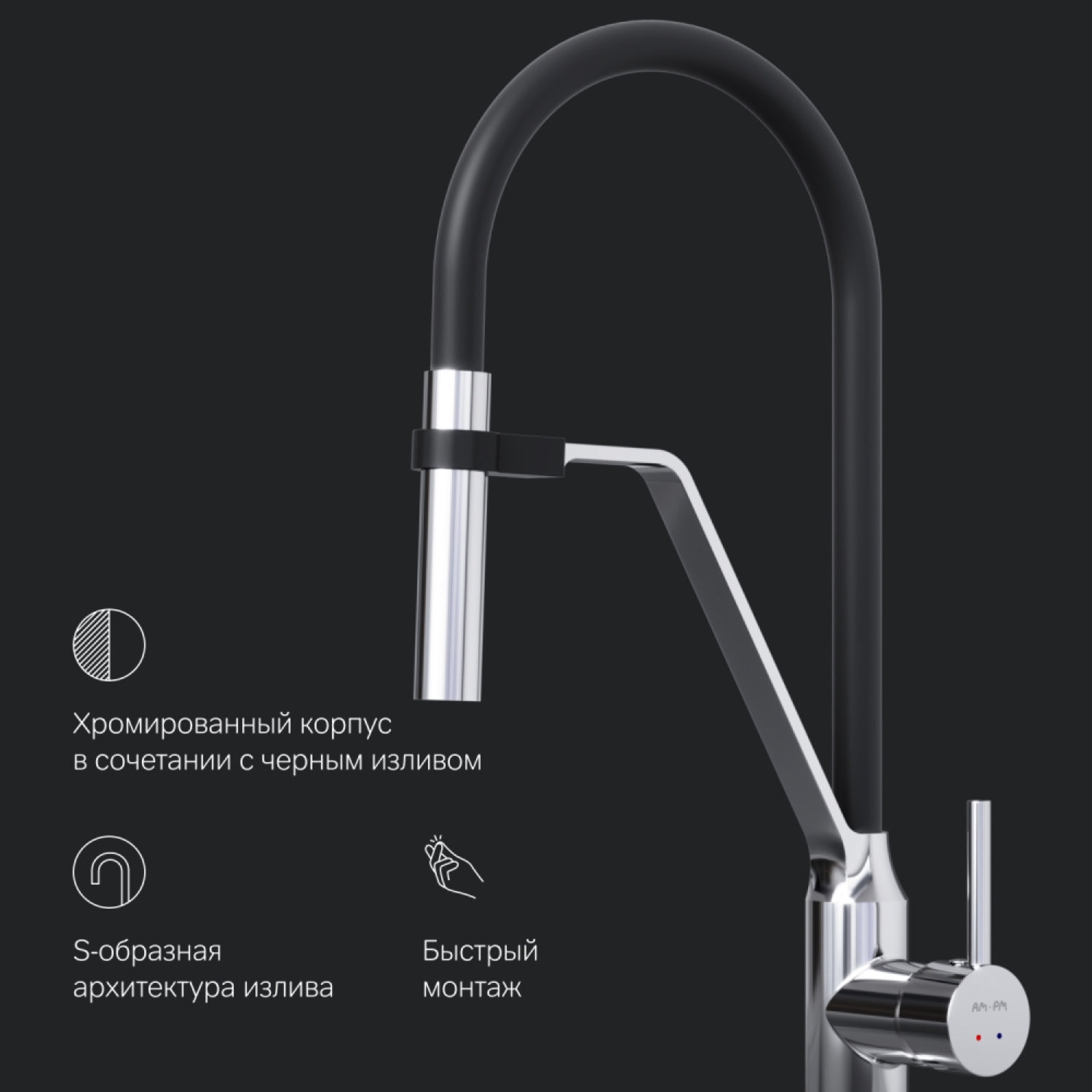 Стильный и функциональный смеситель для кухни с профессиональным изливом.