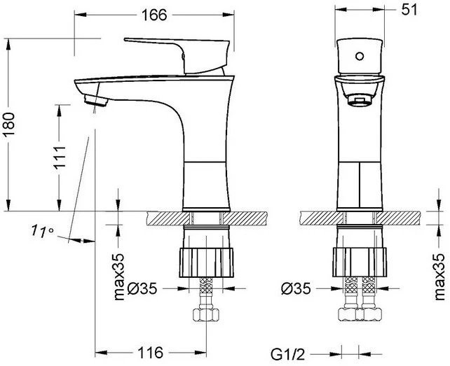 LM0206C "NERO" Смеситель для умывальника монолитный, хром
