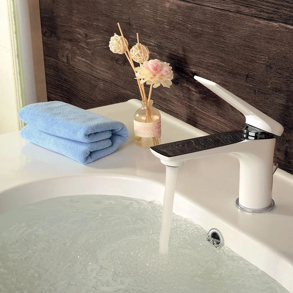 LM5906CW "ALLEGRO" Смеситель для умывальника монолитный, хром/белый