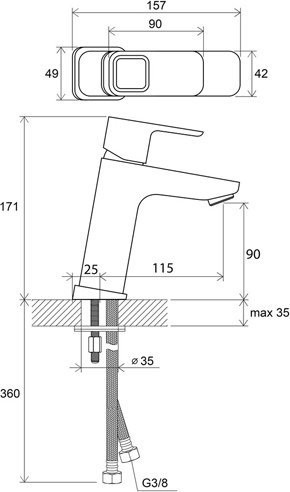 Смеситель для умывальника без донного клапана 170 мм TD 014.00