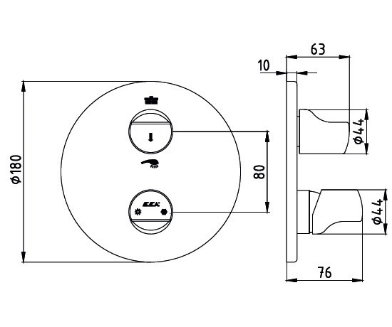 102167203HEX-YDE MYRA смеситель для ванны 2 режима (внешняя часть)