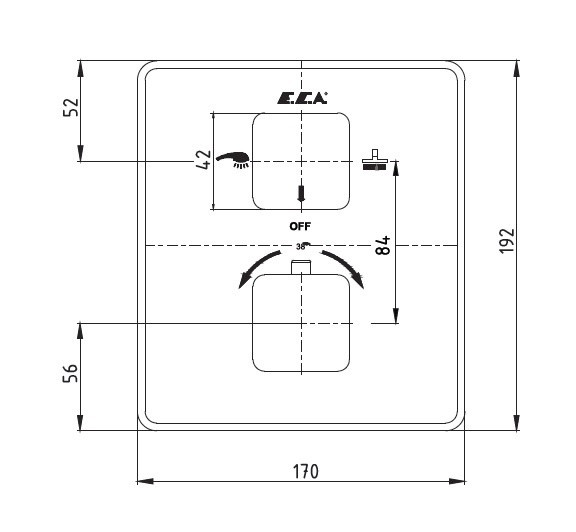 102167216EX-KDE термостатический смеситель для ванны,2 режима(внешняя часть)