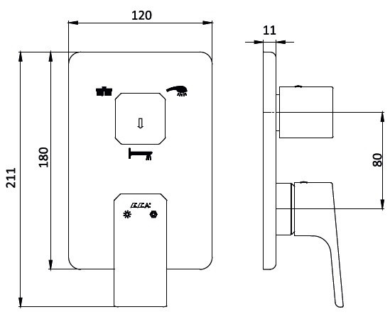 102167305C1EX-K TIERA смеситель для ванны 3 режима(внешняя часть) матовый черный