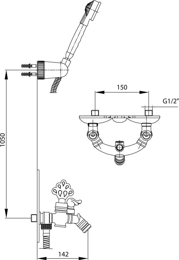 102202001EX OTTOMAN смеситель для ванны с душевым комплектом антик лак