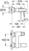 23140000 Eurocube Cube Смеситель для ванны с душем, хром