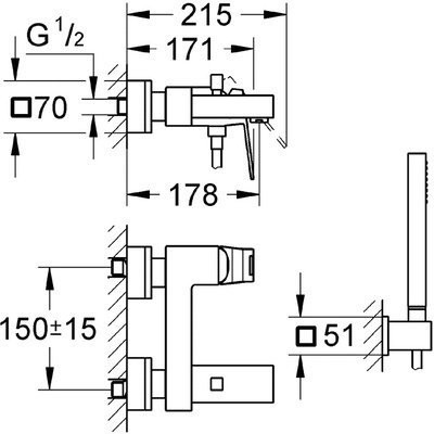 23141000 Eurocube Смеситель для ванны с душевым гарнитуром, хром